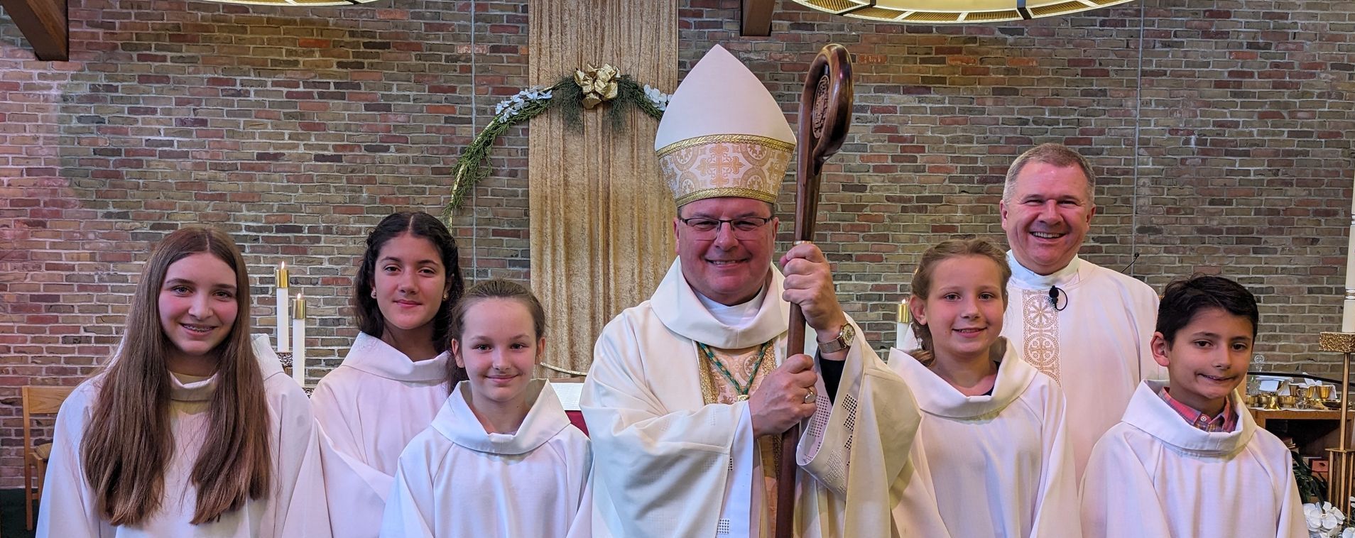 A welcoming community centered on the Eucharist and modeled after Mary, who strive to be faithful stewards of God's gifts through our commitment to worship, holiness, service, justice, and evangelization.