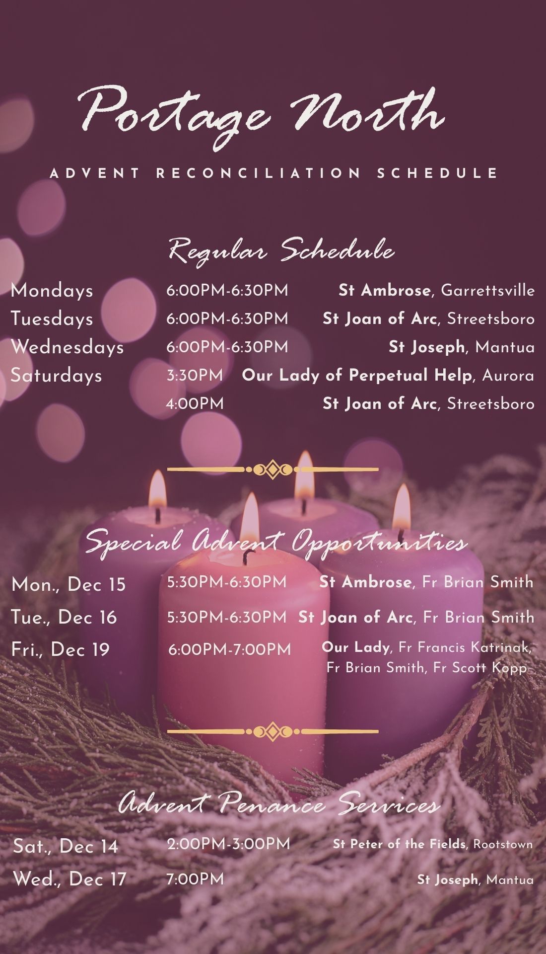 Saturday: 3:30-4:15 pm or by appointment.